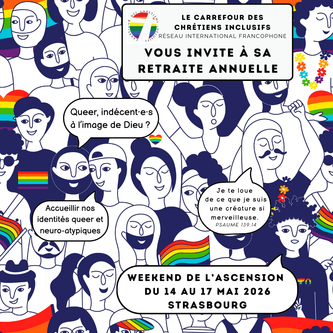 La prochaine retraite aura lieu du jeudi 14 au dimanche 17 mai 2026 à Strasbourg, au Centre Saint Thomas. Pour s’inscrire : https://www.helloasso.com/associations/carrefour-des-chretiens-inclusifs/evenements/retraite-du-cci-2026